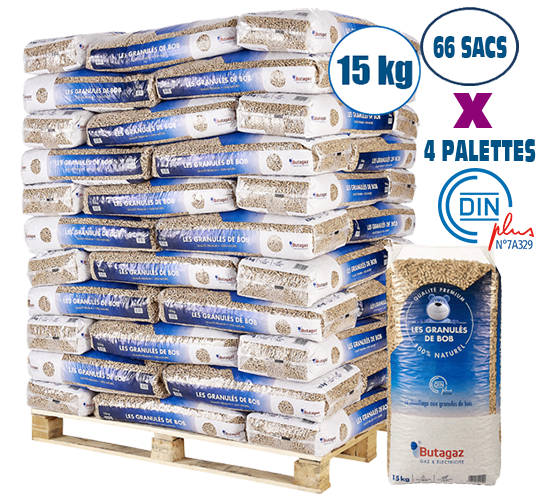 Titre 4 Palettes – Butagaz – 66 Sacs de 15 KG – Granulés de bois